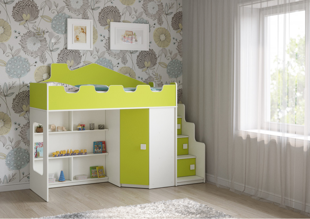 Кровать доступна в трех цветовых решениях: лайм, белый и розовый. Это позволяет выбрать наиболее подходящую расцветку для вашего интерьера и создать уютную атмосферу в детской комнате.